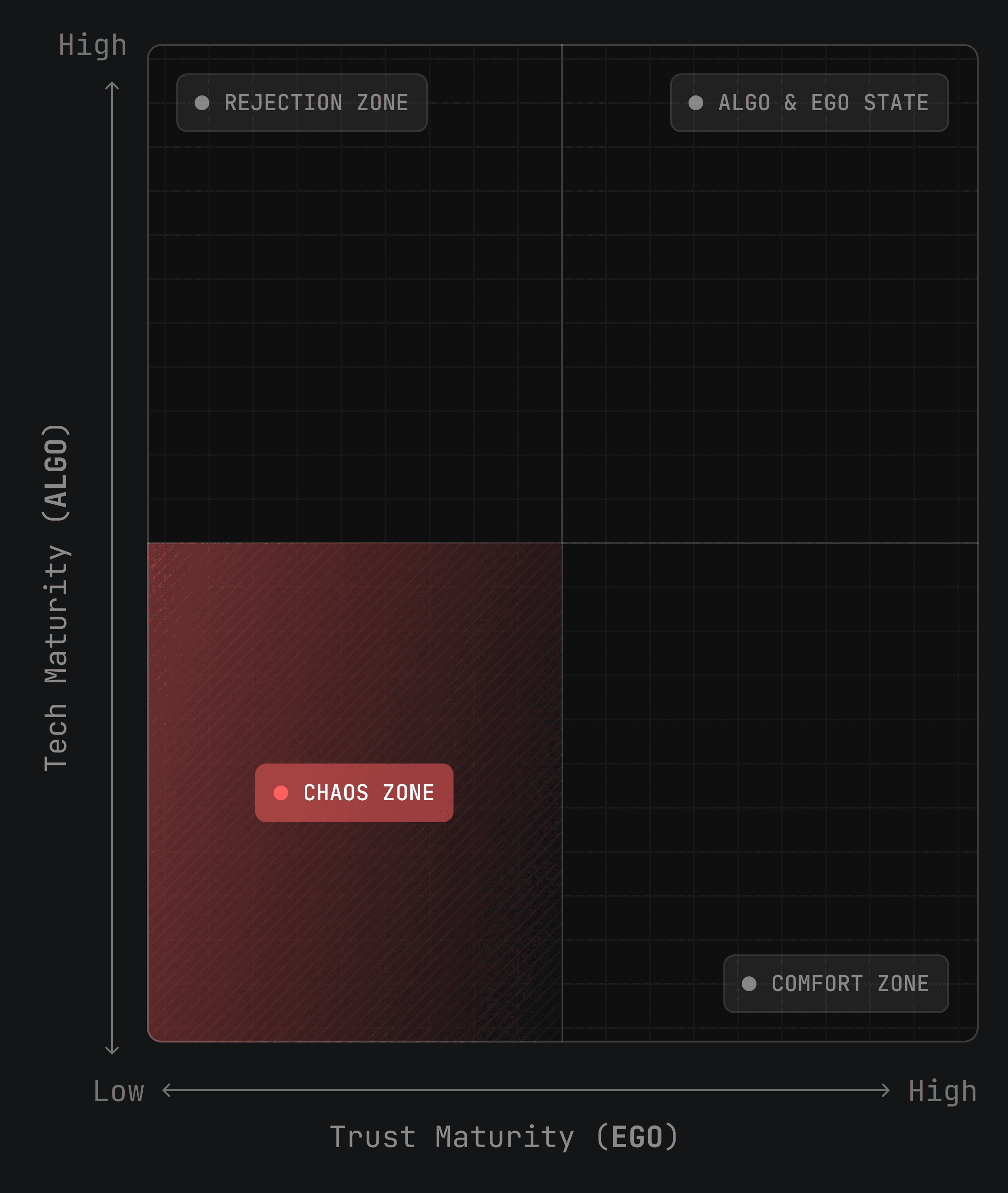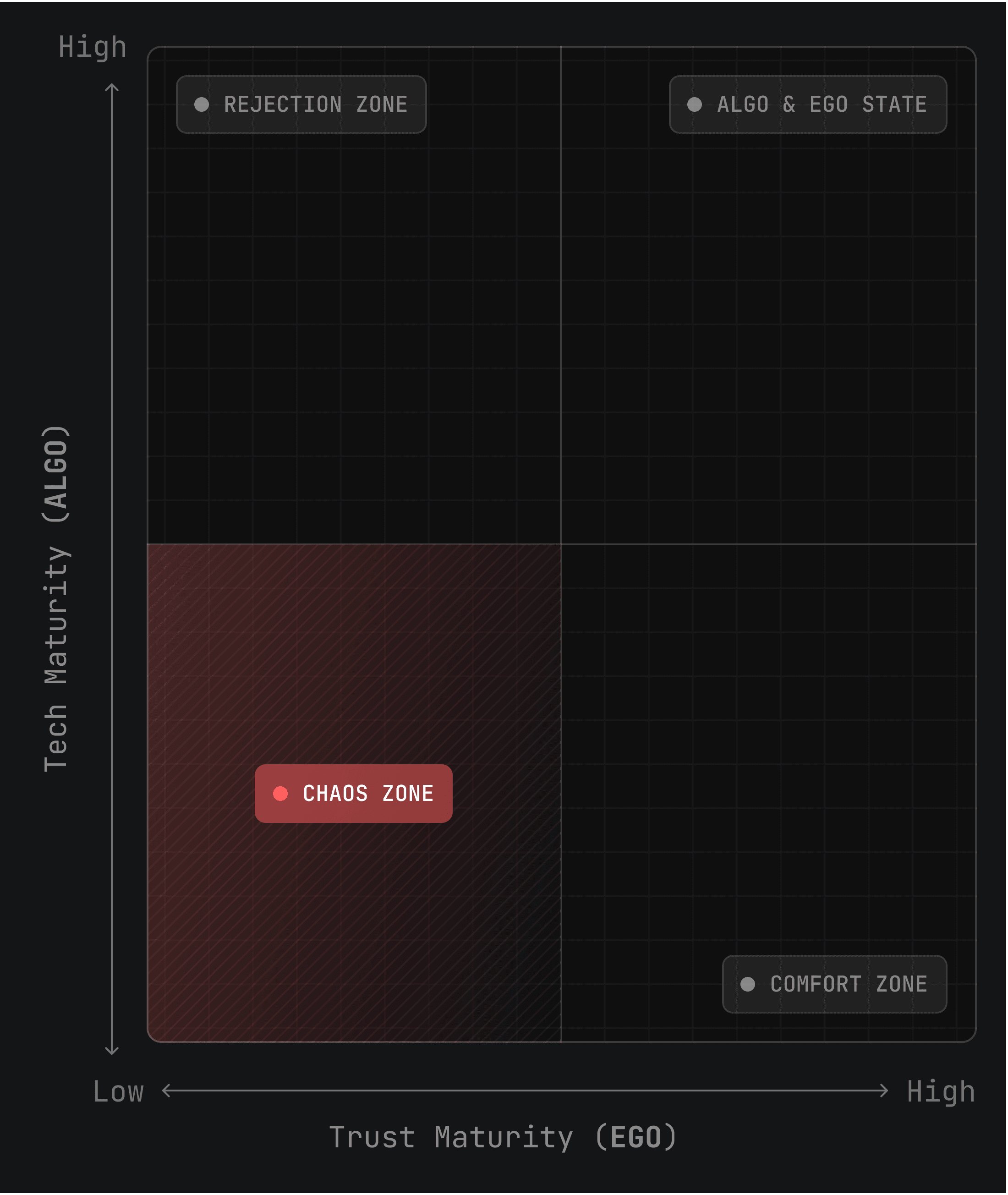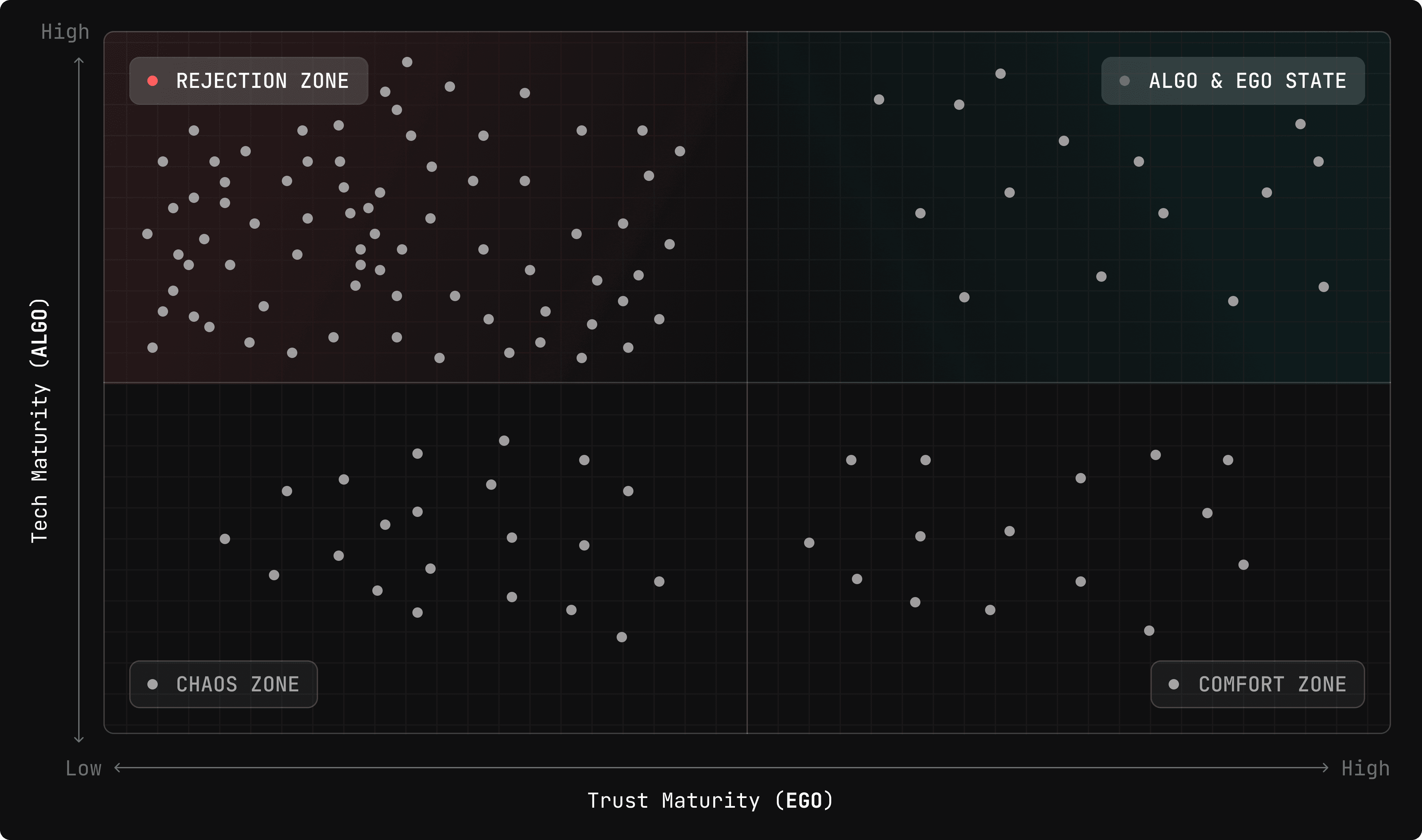 If in the Rejection Zone, pause new tech. Invest in “Ego” (psychological safety) to stop the immune response.